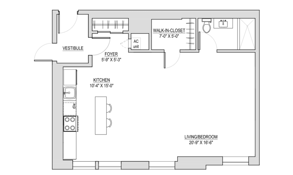 Bright unfurnished studio apartment located on the Upper East Side. Apartment features a chef's kitchen, spa-like bathroom, and double pane city windows.