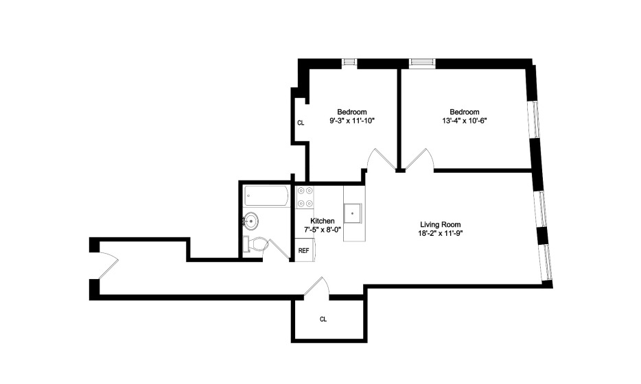 Spacious 2 bedroom, 1 bathroom apartment located in Washington Heights. Apartment features a spacious floorplan spanning over 700 sq ft, breakfast bar, and a view of the Hudson River and the George Washington Bridge.