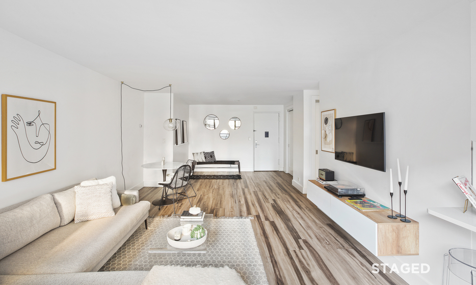 Renovated 1 bedroom, 1 bathroom apartment located in Columbus Circle. This apartment features a large open living room with a dining area, renovated kitchen with stainless steel appliances, and a king-sized bedroom with ample closet space.