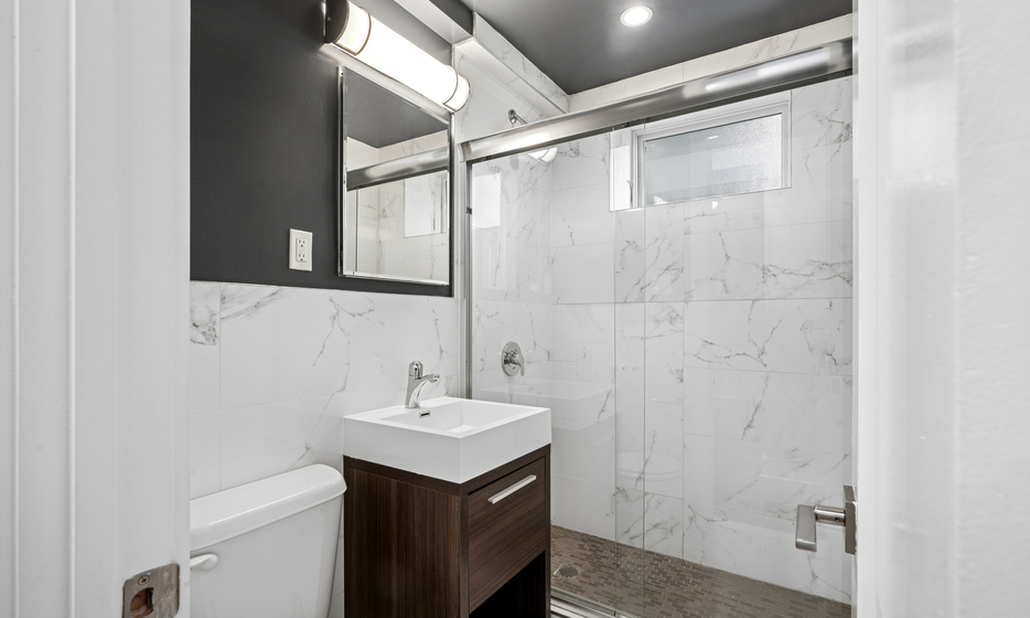 Renovated 1 bedroom, 1 bathroom apartment. This apartment features a renovated kitchen with white caesarstone countertops, custom cabinetry, and stainless steel appliances.