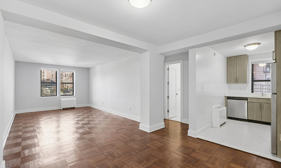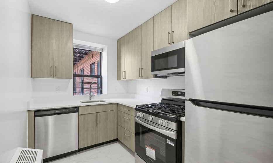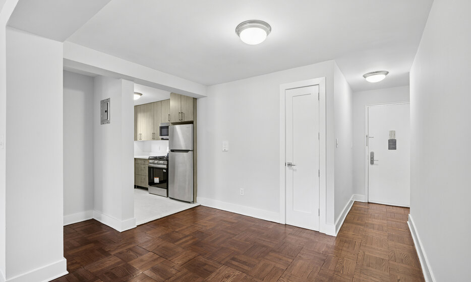 Renovated 1 bedroom, 1 bathroom apartment. This apartment features a renovated kitchen with white caesarstone countertops, custom cabinetry, and stainless steel appliances.