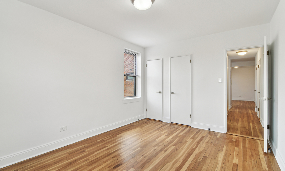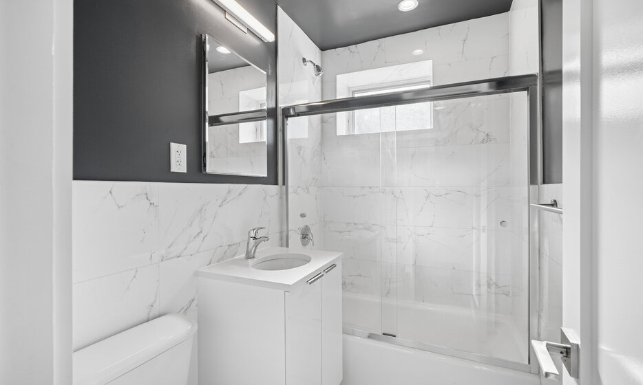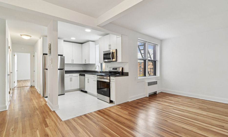 Renovated 2 bedroom, 1 bathroom apartment. This apartment features a renovated kitchen with white caesarstone countertops, custom cabinetry, and stainless steel appliances.